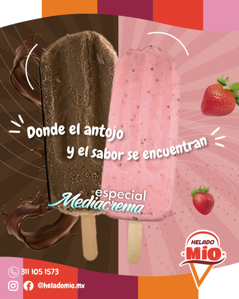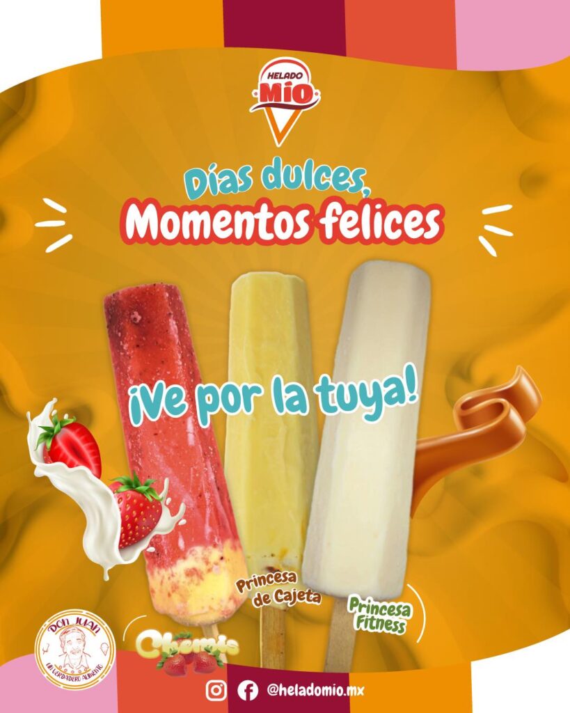 ¡Nuestros Helados! ¡En Helado Mío, priorizamos tu nutrición y tu diversión! Cada bocado es una promesa de sabor excepcional y frescura incomparable. ¡No te pierdas nuestras paletas, helados y sandwiches… Te encantarán todos nuestros sabores!¡Disfruta Helado Mío!
